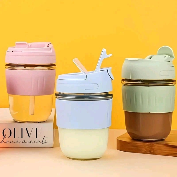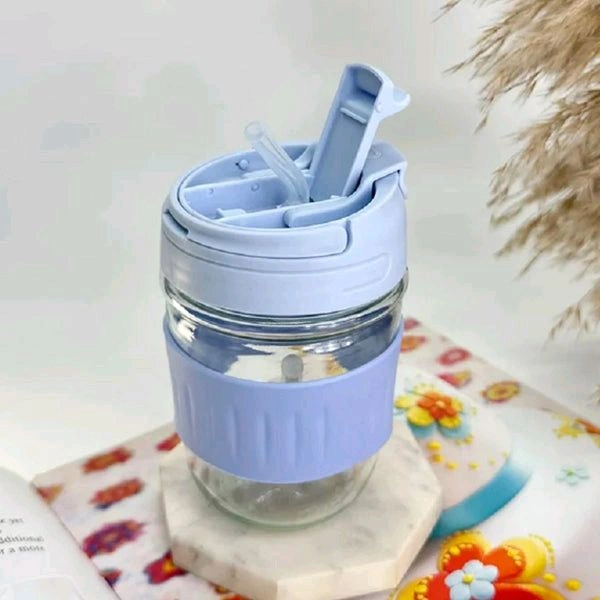 Glass Cup Coffe With Double Sipper